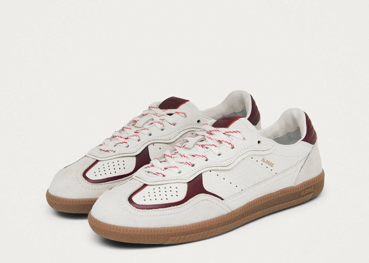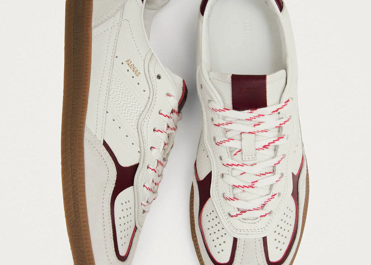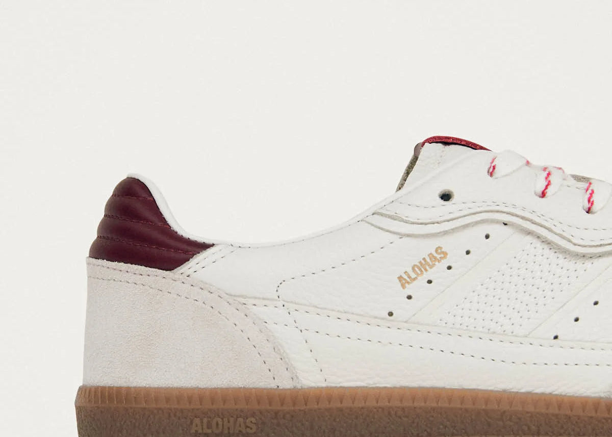 'Alohas' RIFE GRAIN WHITE BURGUNDY LEATHER SNEAKERS