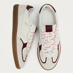 White leather and suede sneakers with burgundy trims