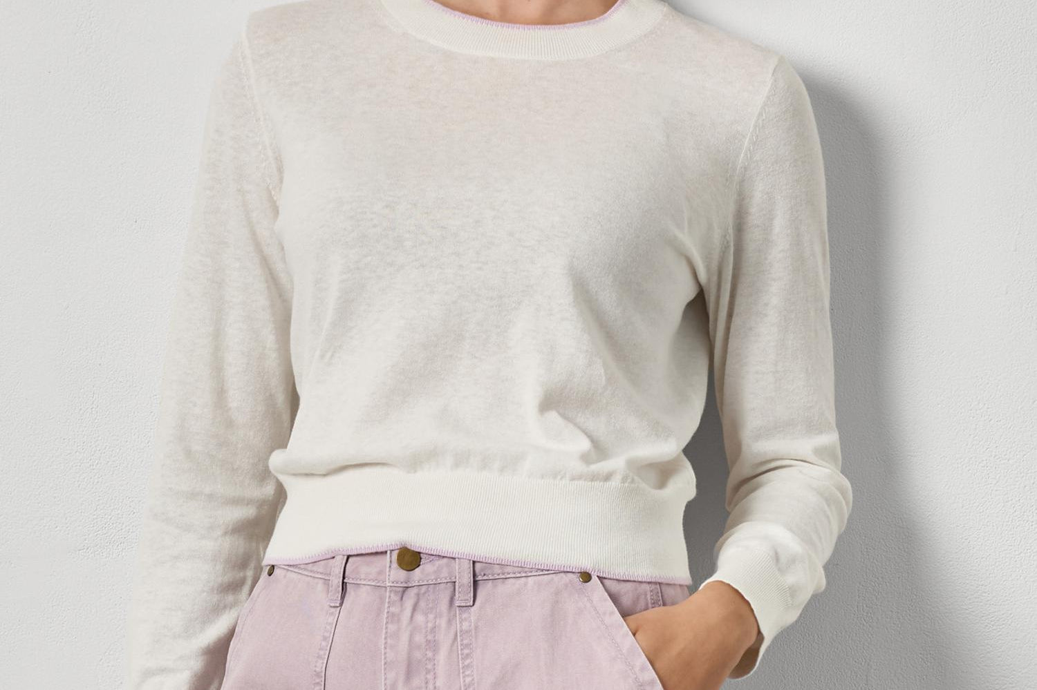Embrace the season in this charming crewneck sweater, designed with a delicate pink picot edge trim that adds a feminine touch to your spring wardrobe. The lightweight construction keeps you comfortable as temperatures rise, making it ideal for layering or wearing solo on mild days. Its versatile style pairs effortlessly with jeans, skirts, or trousers, ensuring you'll reach for it again and again. Perfect for transitioning your closet into spring with understated elegance and practical comfort.