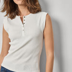 Effortless elegance meets everyday comfort in this sunwashed cap sleeve henley. The ribbed fabric provides a flattering, structured fit while the convenient snap button front allows for easy layering and styling versatility. Crafted in crisp white, this timeless piece transitions seamlessly from casual weekends to polished weekday looks. The relaxed cap sleeves offer a modern silhouette that flatters all body types. A wardrobe essential that works as hard as you do.