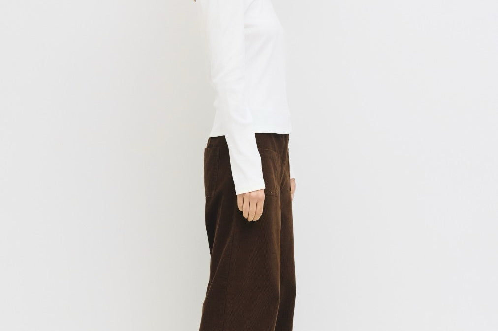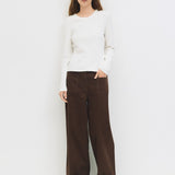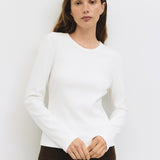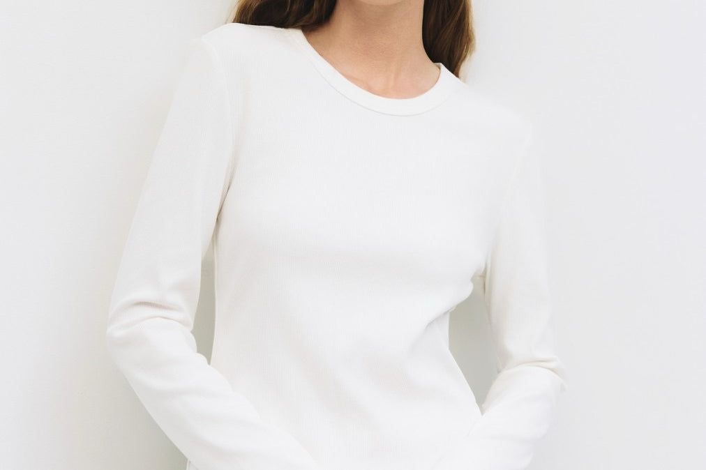 The Kathy Top is a slim-fit long-sleeved tee made from midweight ribbed knit. It features a classic crewneck and long sleeves for a clean, simple look. Perfect for layering or wearing on its own. Style Number: TMR0565 Self: 46% Cotton, 46% Rayon, 8% Spandex