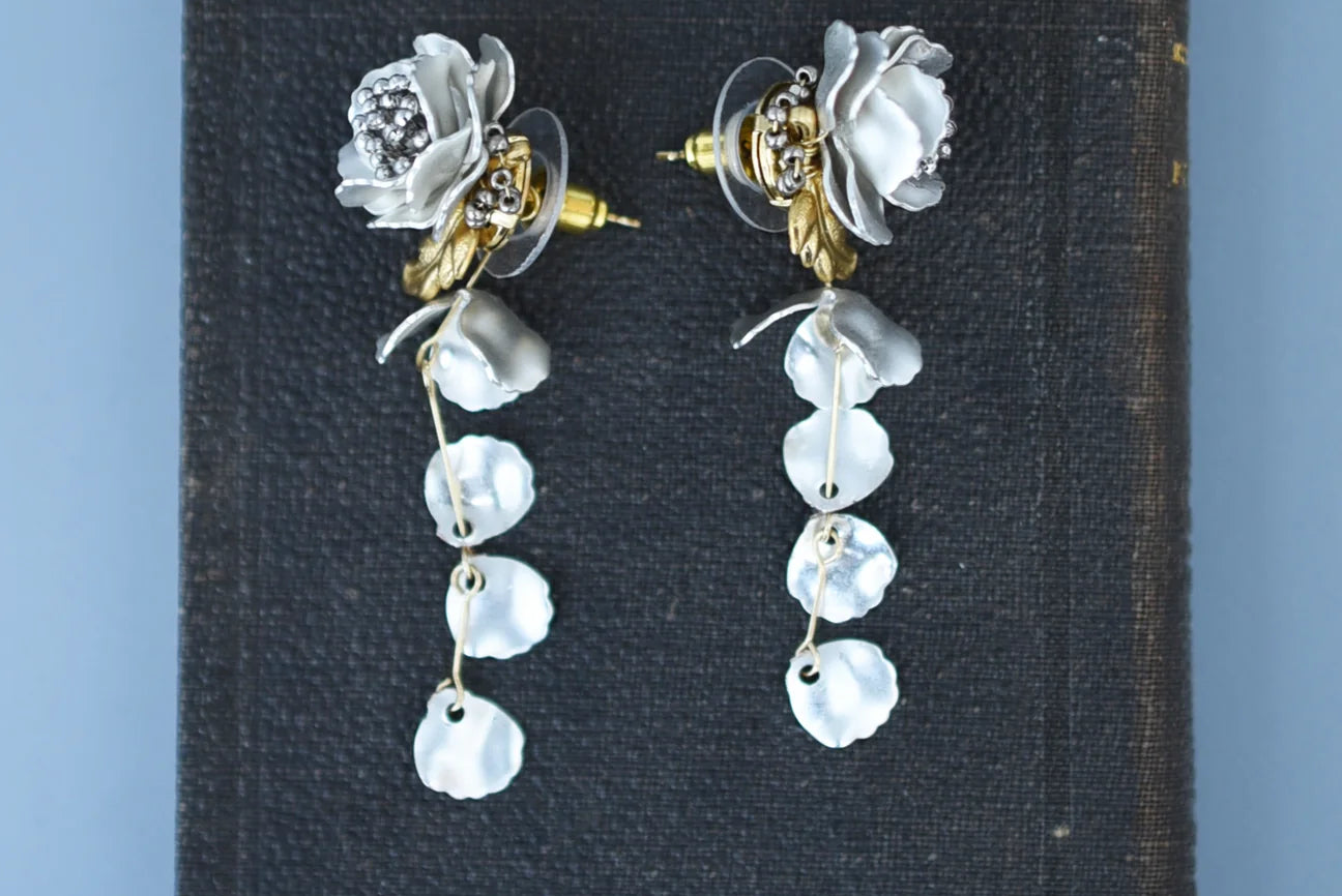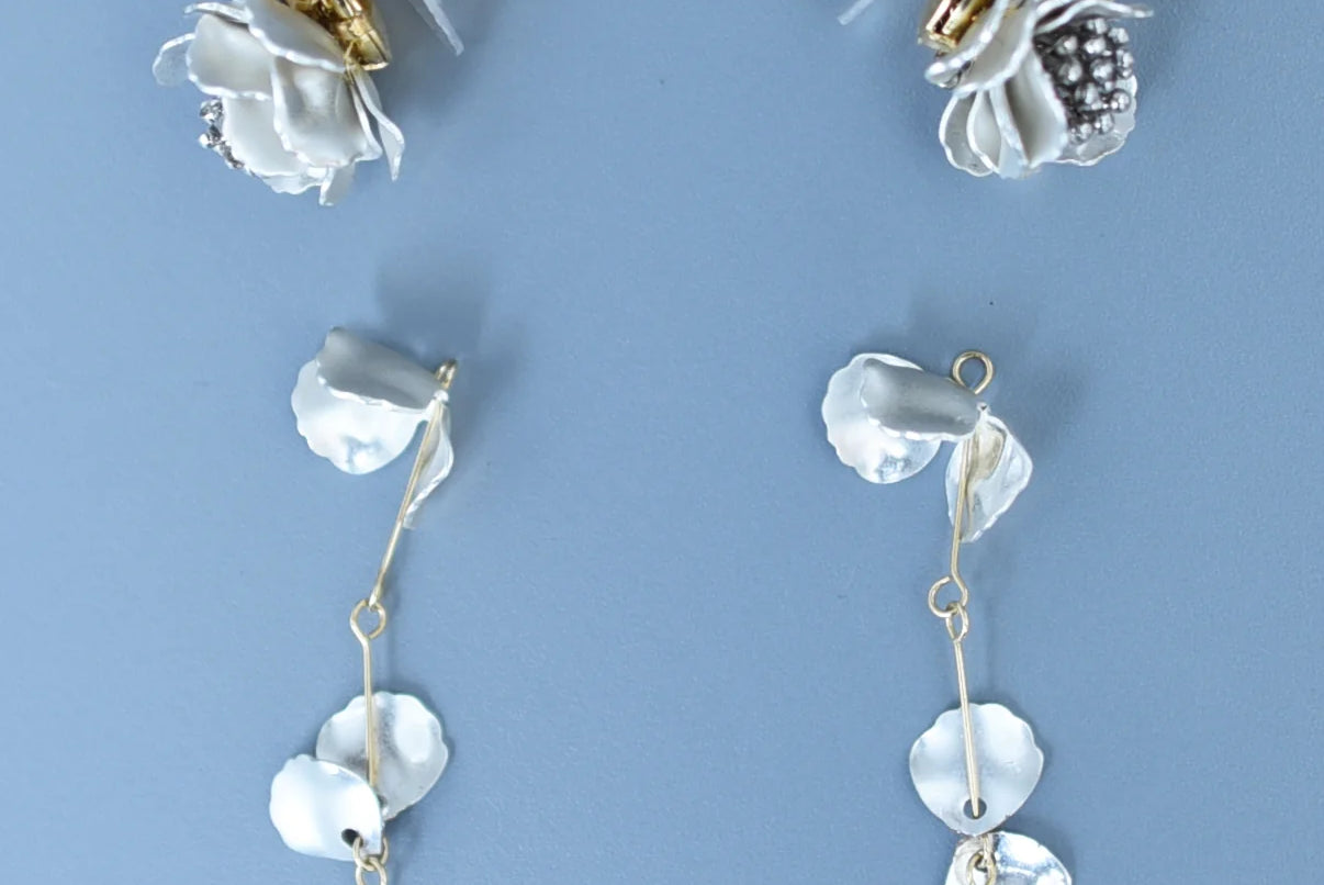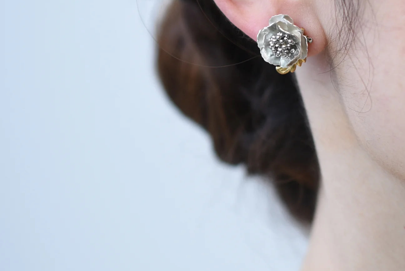 The petal charm hanging at the back can be removed, so you can use them in two ways as simple earrings.