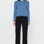 -Crew neckline with subtle scalloped edge