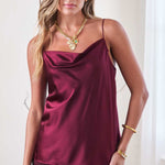 Crafted from 100% silk, this elegant cami features a graceful cowl neck and delicate spaghetti straps with adjustable length for a perfect fit. Its luxurious fabric drapes beautifully, offering both comfort and refined style ideal for layering or wearing alone on special occasions.
