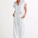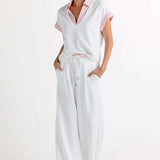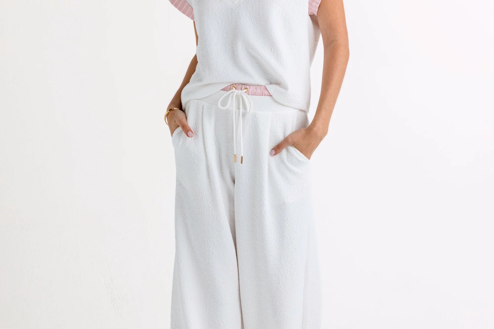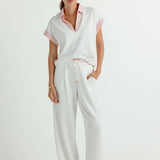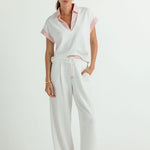 The best-selling Leonie Pants are back and refreshed in crisp white with our signature Roselight yarn-dyed stripe, designed for effortless, slouchy, off-duty polish.