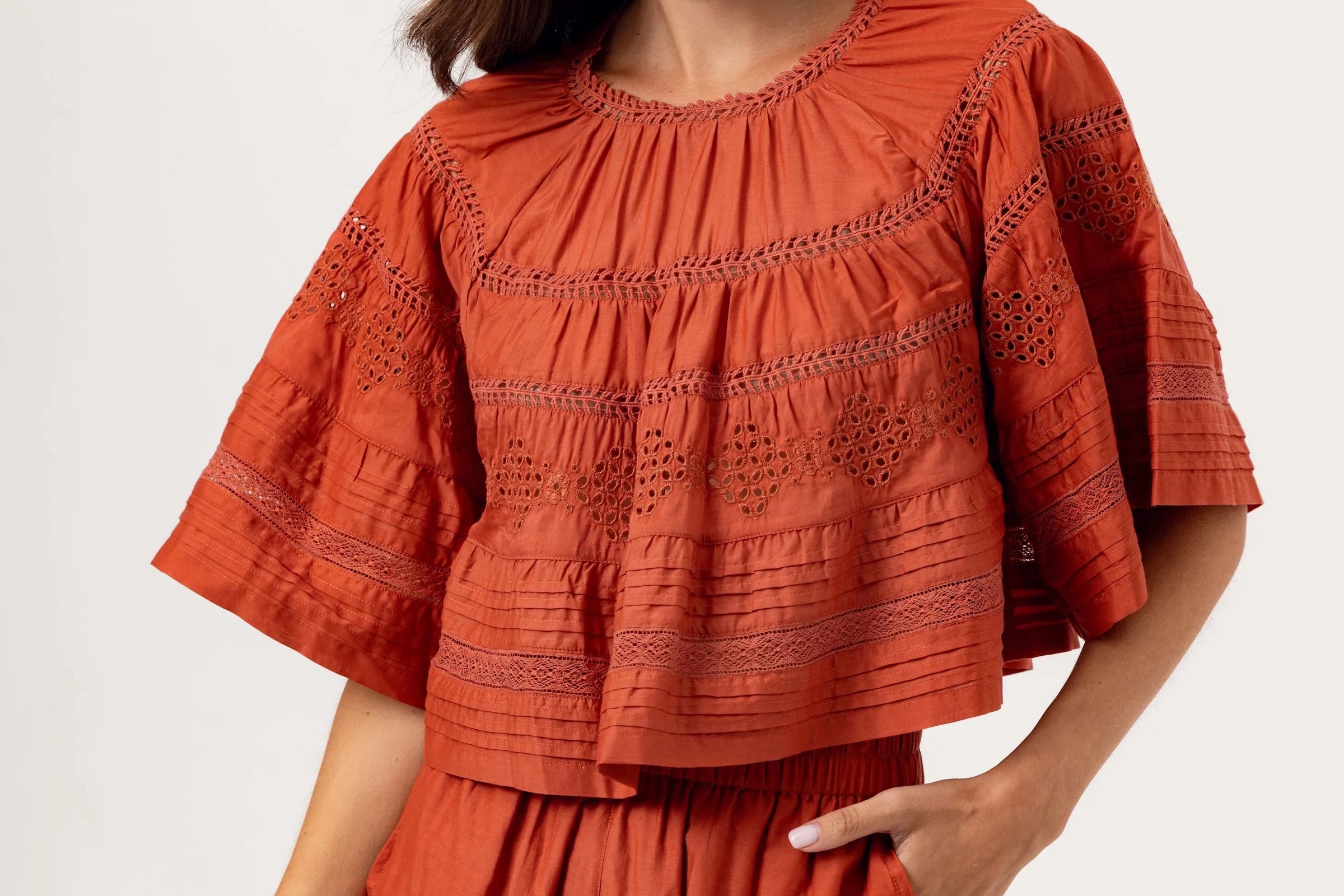 A softly feminine top designed to feel both delicate and effortless, the Essa Top brings subtle detail to an easy, wear-anywhere silhouette.